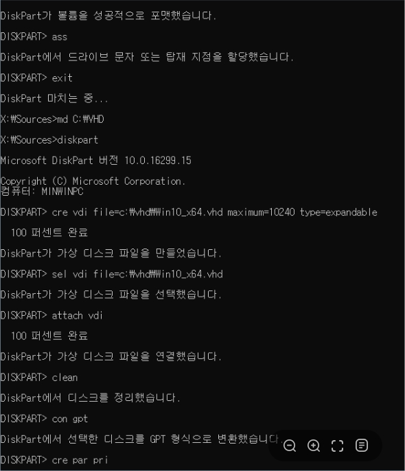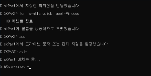 => DISKPART 종료.